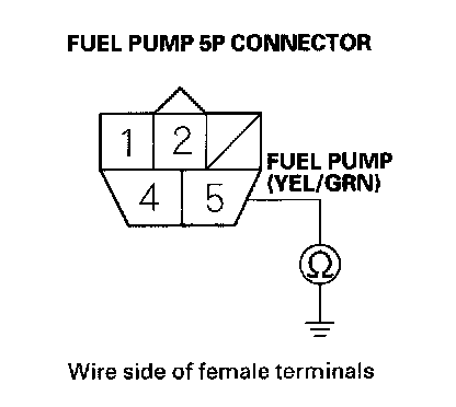 45. Check for continuity between fuel pump 5P connector terminal No.5 and body ground.