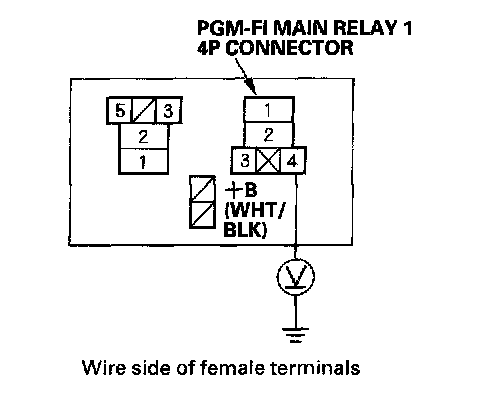 63. Measure voltage between PGM-FI main relay 1 4P connector terminal No.2 and body ground.