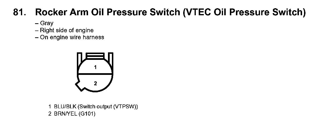 81. Rocker Arm Oil Pressure Switch (VTEC Oil Pressure Switch):