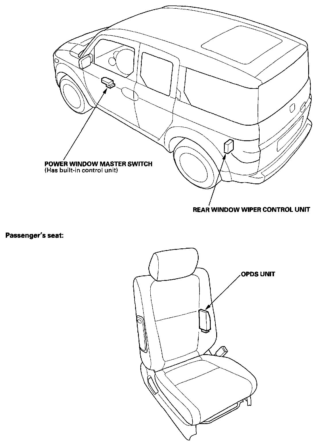 Relay And Control Unit Locations - Door, Roof And Seat: