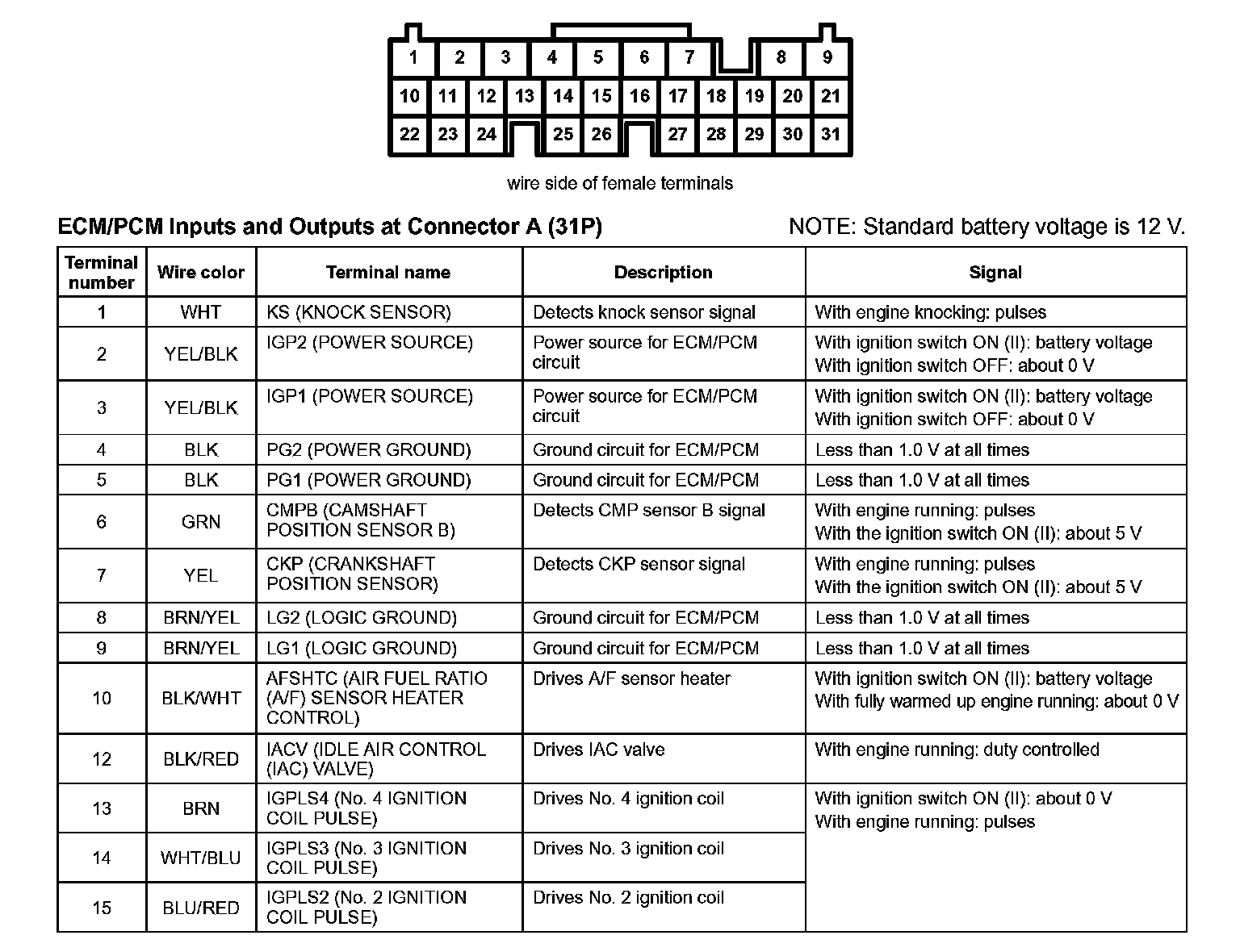 Home >> Honda >> 2003 >> Element 4WD L4-2.4L >> Repair and Diagnosis >> Diagrams >> Connector Views >> Engine Control Module >> ECM/PCM Inputs and Outputs