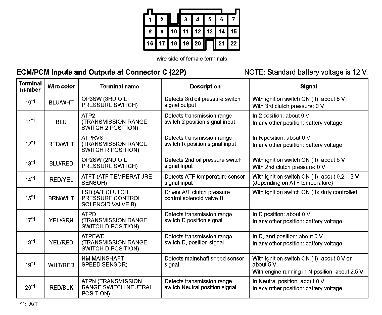 ECM/PCM Inputs And Outputs At Connector C (22P) (Part 1):