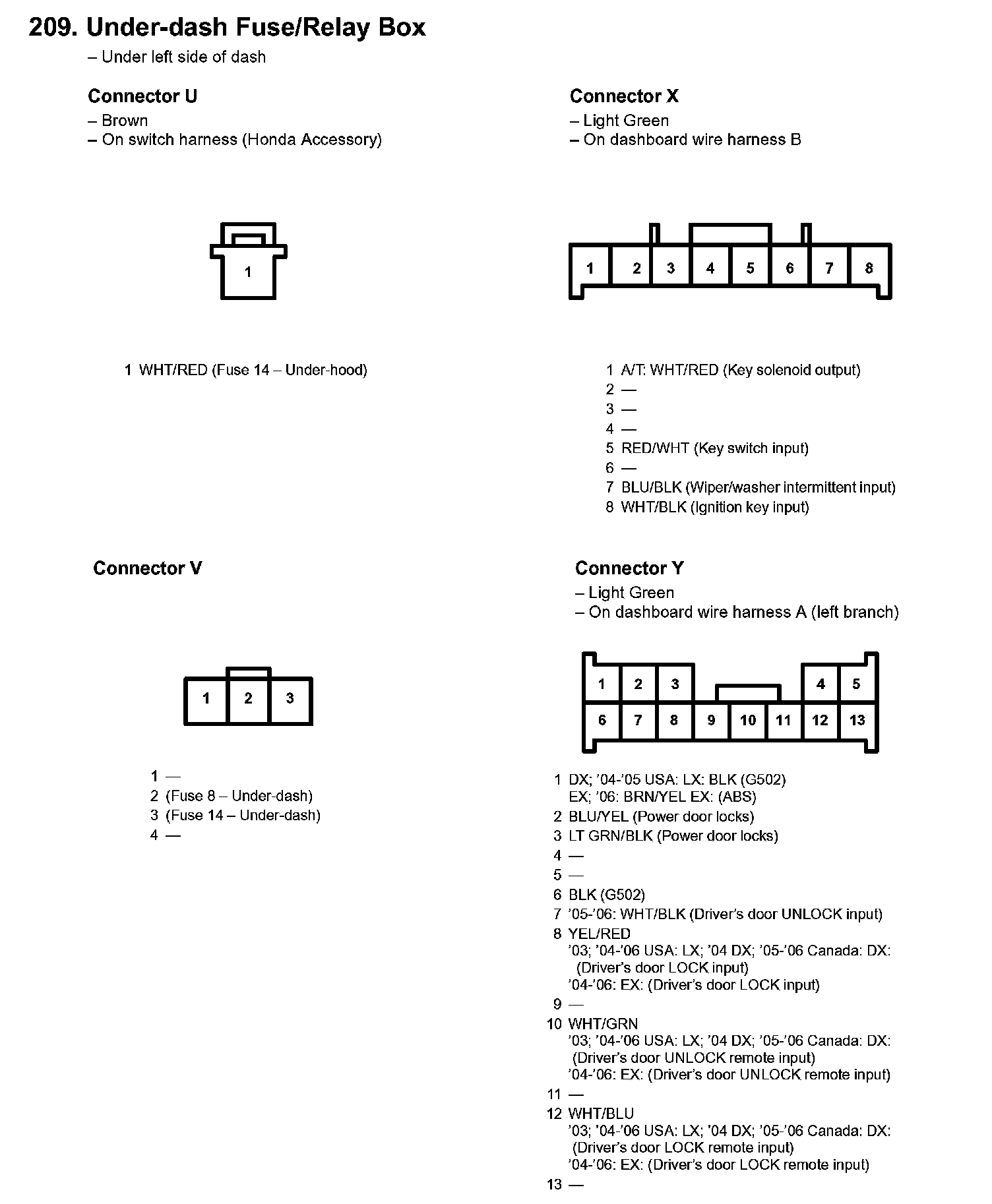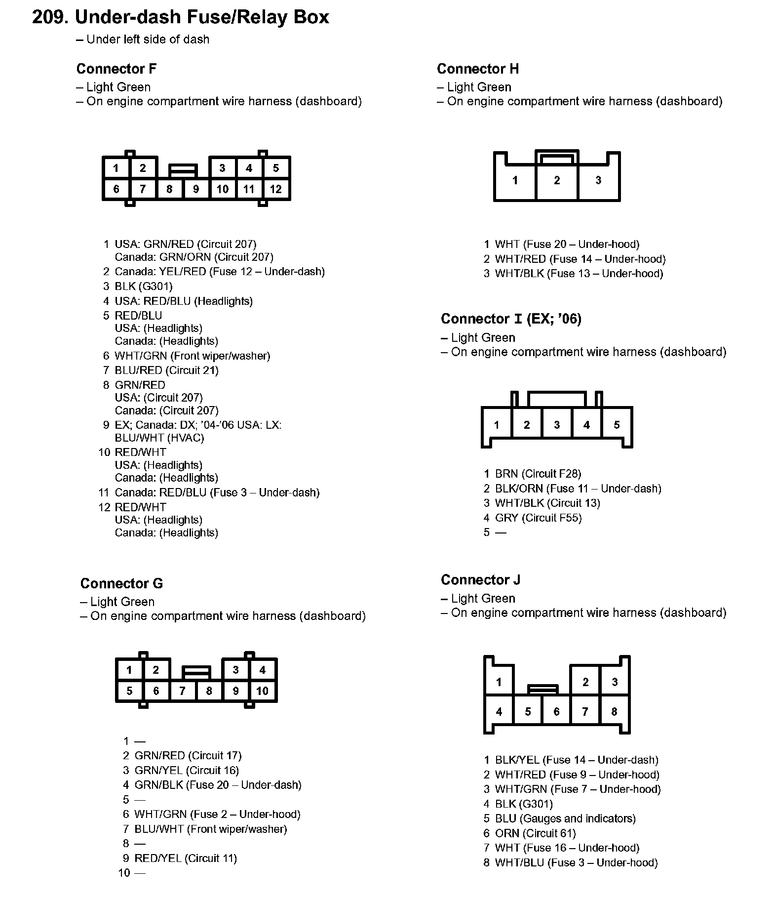 209. Under-dash Fuse/Relay Box: