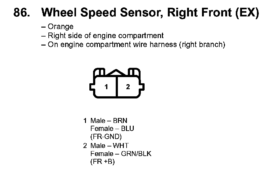 86. Wheel Speed Sensor, Right Front (EX):