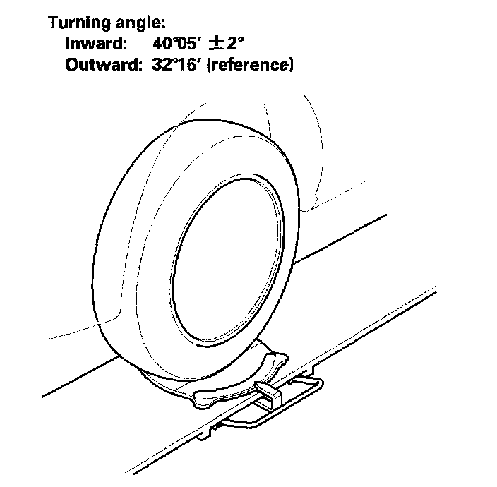 1. Turn the wheel right and left while applying the brake, and measure the turning angle of both wheels.