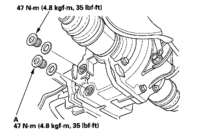 3. The fluid level must be up to the fill hole. If it is below the hole, add the recommended fluid until it runs out, then reinstall the oil filler plug with a new sealing washer.