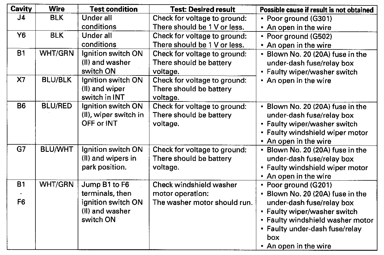 Home >> Honda >> 2003 >> Element 4WD L4-2.4L >> Repair and Diagnosis >> Wiper and Washer Systems >> Wiper Control Module >> Testing and Inspection >> Control Unit Input Test