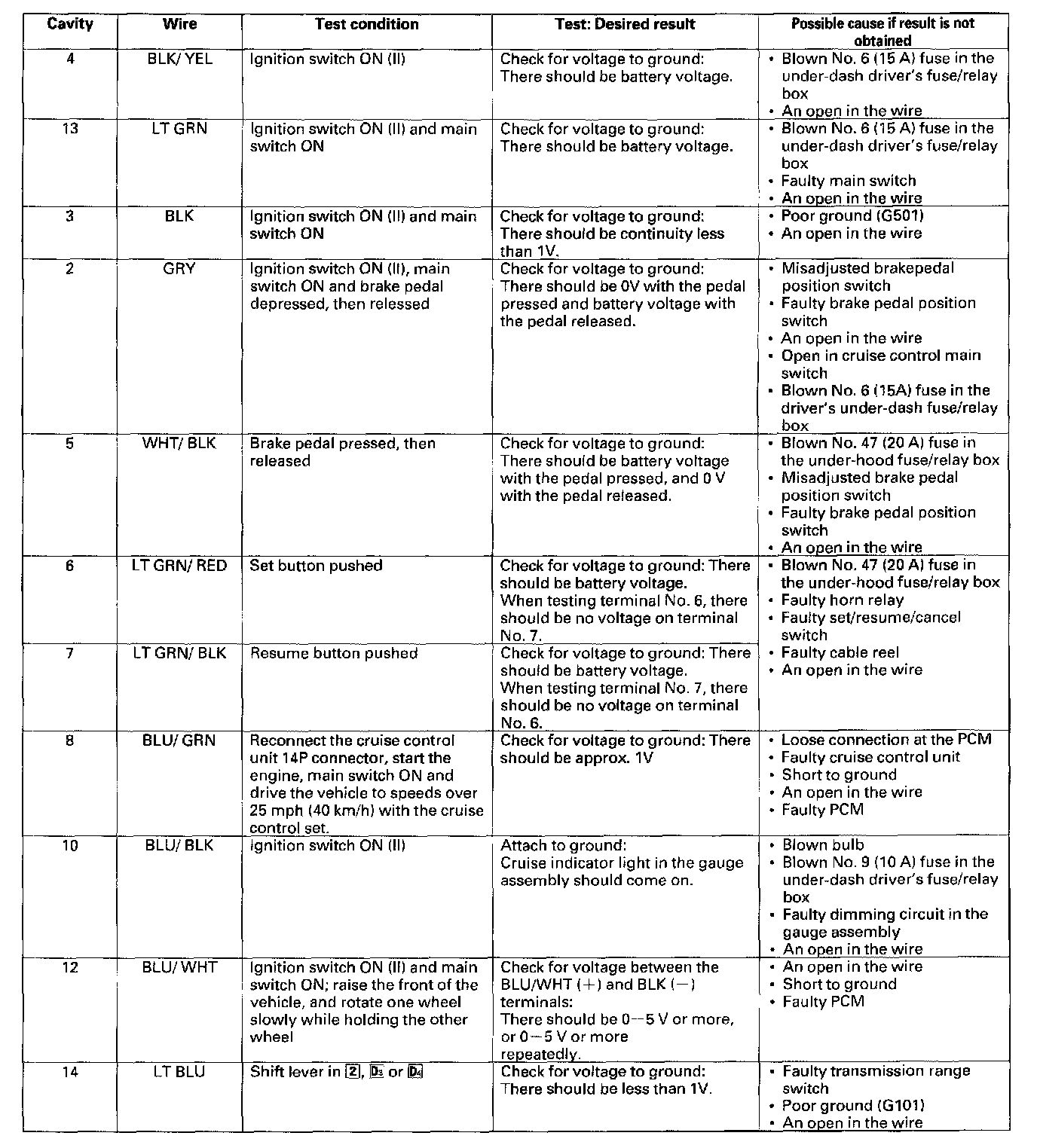 Home >> Honda >> 2003 >> Odyssey V6-3.5L >> Repair and Diagnosis >> Cruise Control >> Cruise Control Module >> Testing and Inspection