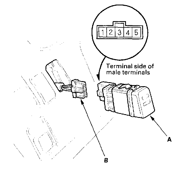 2. Disconnect the 5P connector (B) from the switch.