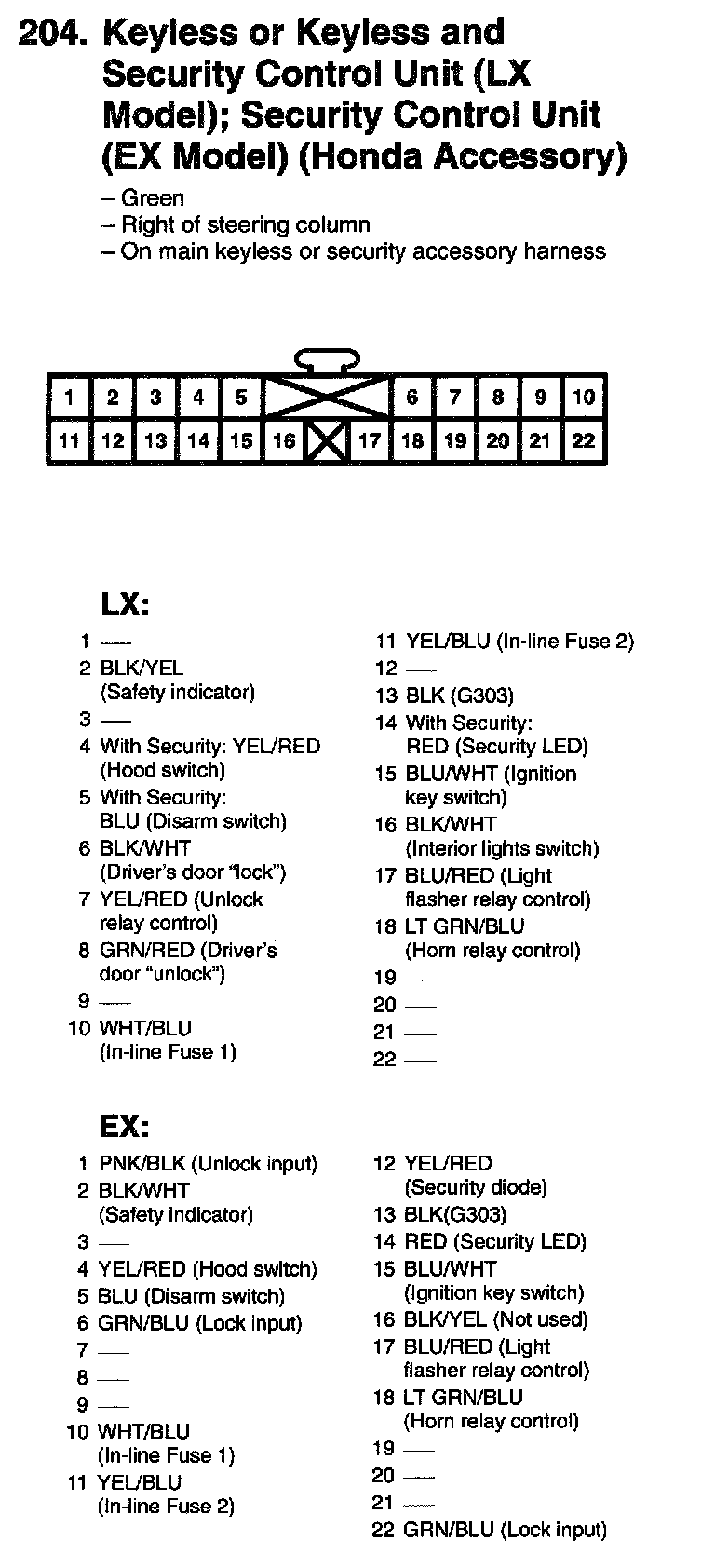 204. Keyless Or Keyless And Security Control Unit (LX Model); Security Control Unit (EX Model) (Honda Accessory):