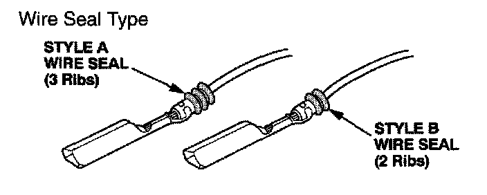 Select the proper size pigtail terminal by matching the replacement terminal part number and the wire size being repaired to the corresponding pigtail terminal part number. Then use the color (size) splice connector listed. In some instances you may also have to match the wire seal style to select the proper pigtail terminal. Pigtail terminals are available through your parts department, in quantities of 10, using normal parts ordering procedures.
