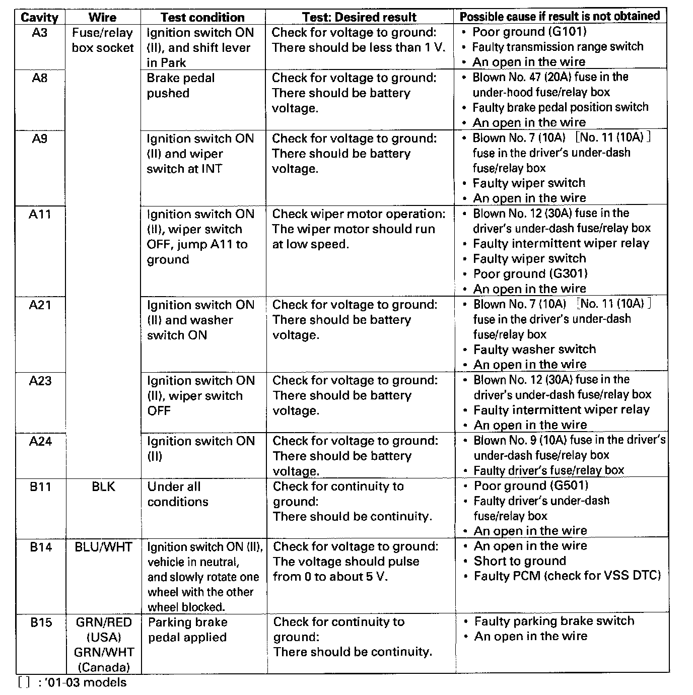 WIPERS/WASHERSControl Unit Input Test