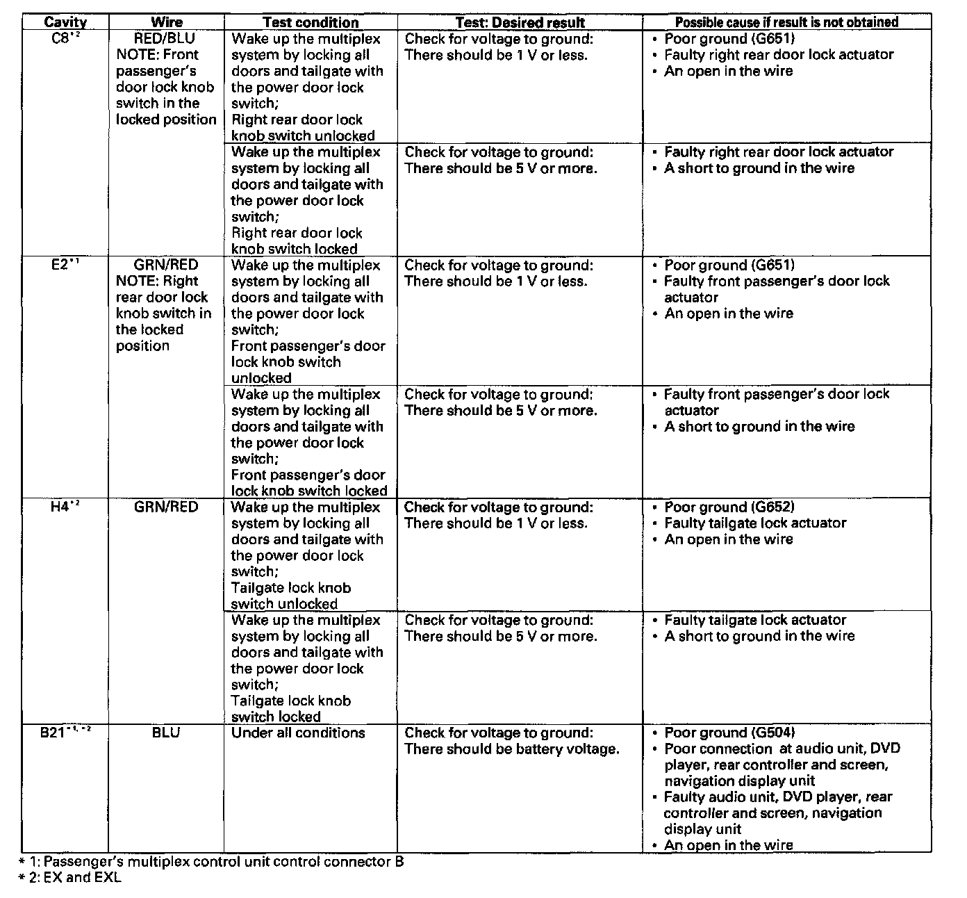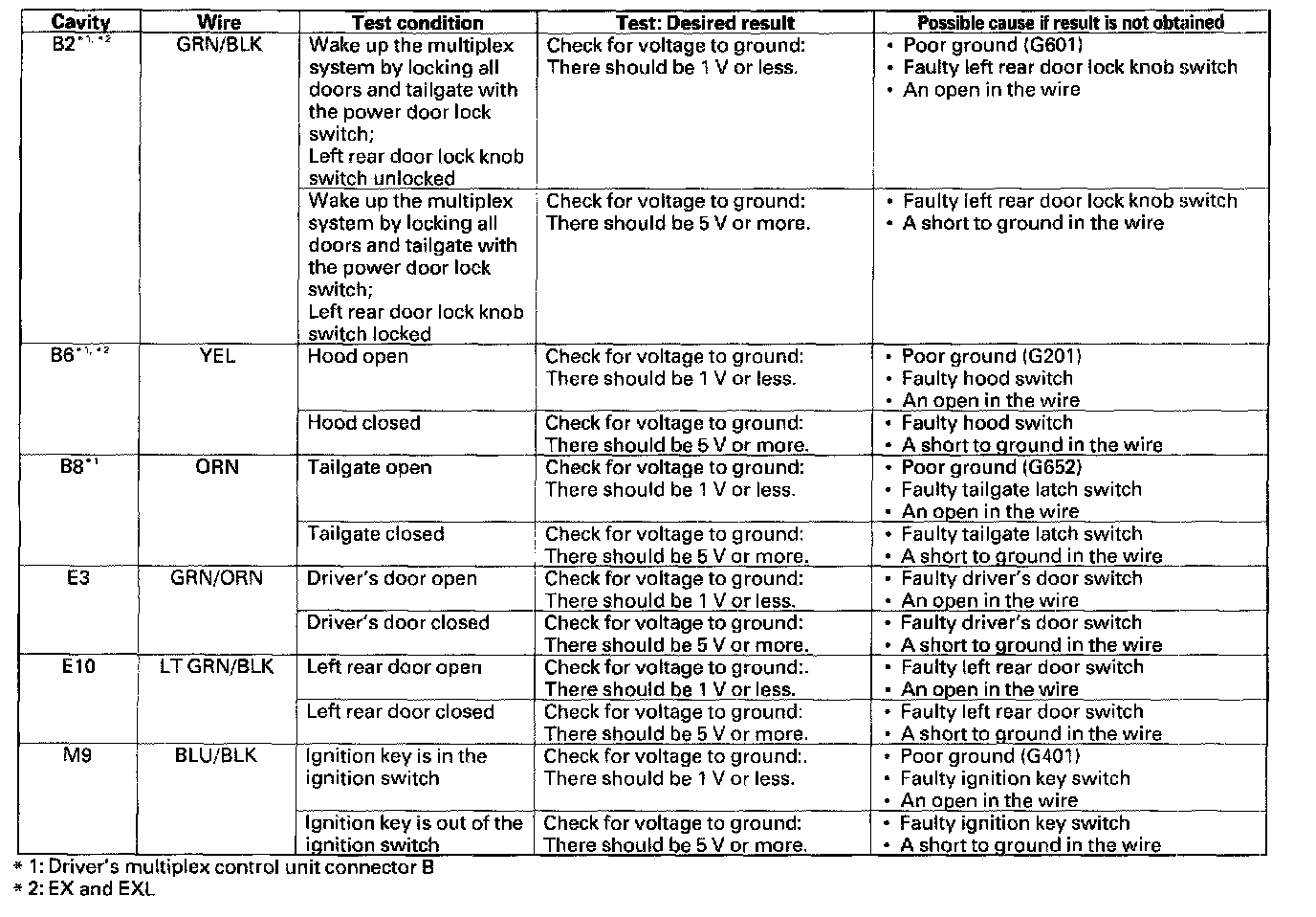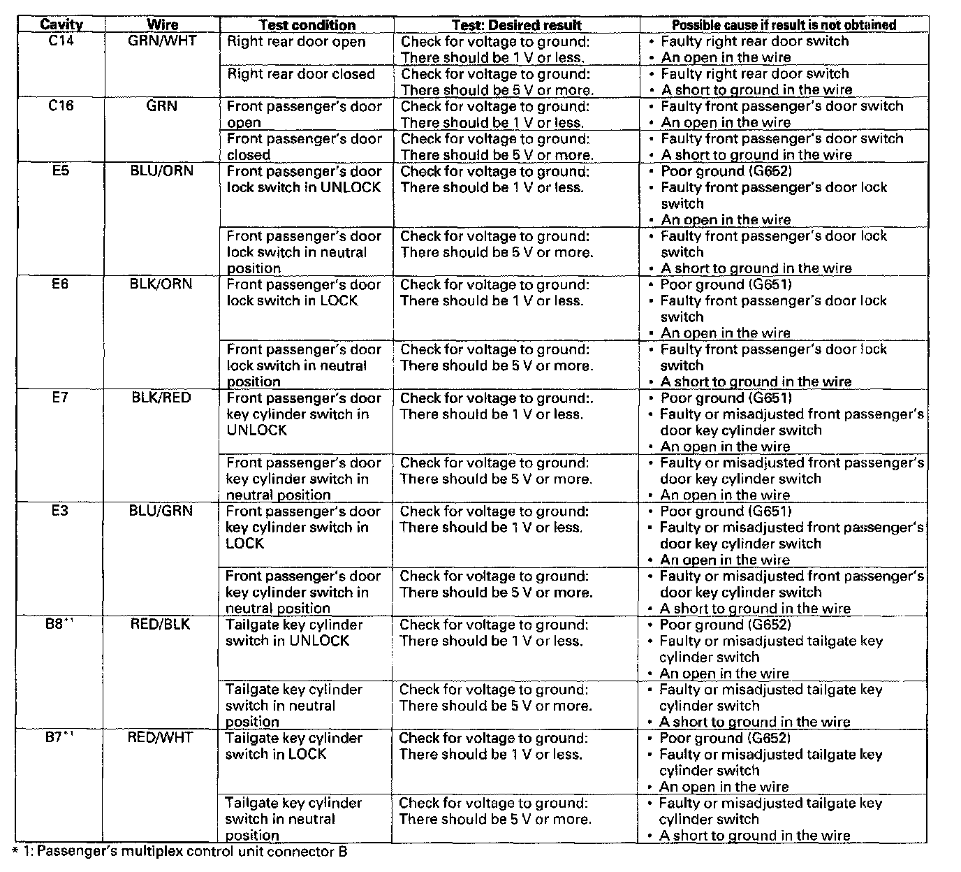 Control Unit Input TestNOTE: These tests cover the door, driver's, and passenger's multiplex control units.