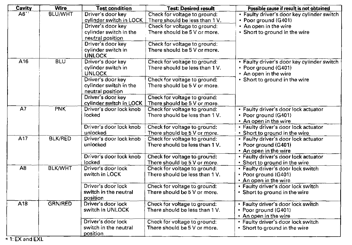 13. Reconnect the door multiplex control unit 20P connector, and perform the following input tests at the connector.