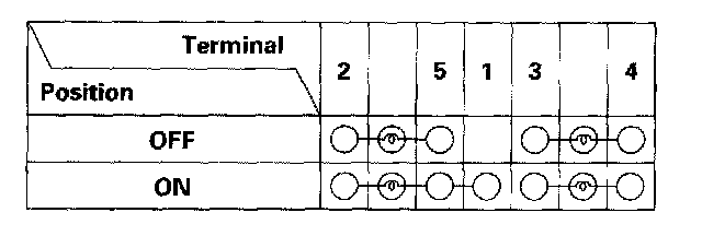 3. Check for continuity between the terminals in each switch position according to the table. If there is no continuity, replace illumination bulbs (C) or the switch.