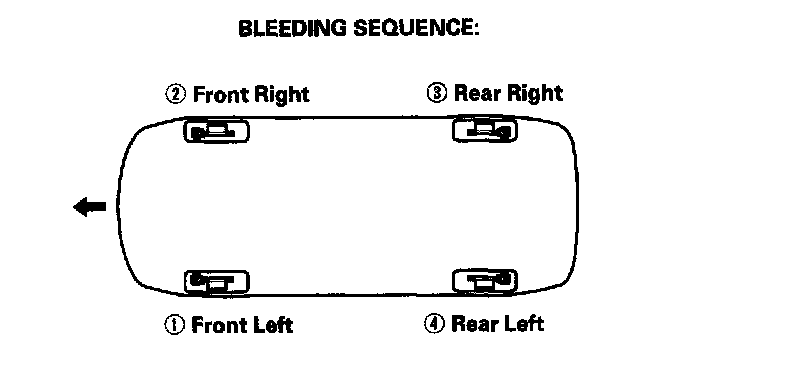 5. Repeat the procedure for each wheel in the sequence shown until air bubbles no longer appear in the fluid.