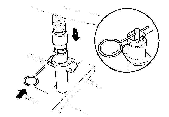 7. Use a hydraulic press to slowly compress the auto-tensioner. Insert a 2.0 mm (0.08 inch) pin through the housing and the rod.