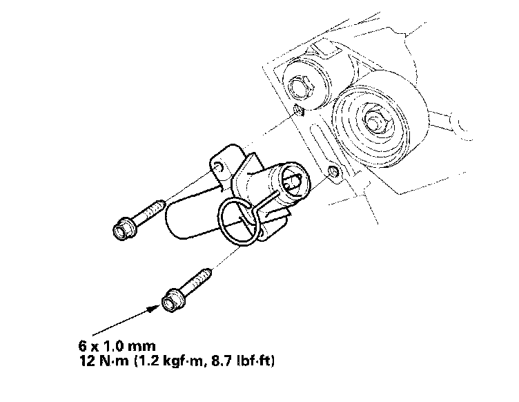 14. Screw the battery clamp bolt in as shown to hold the timing belt adjuster in its current position. Tighten it by hand, do not use a wrench.