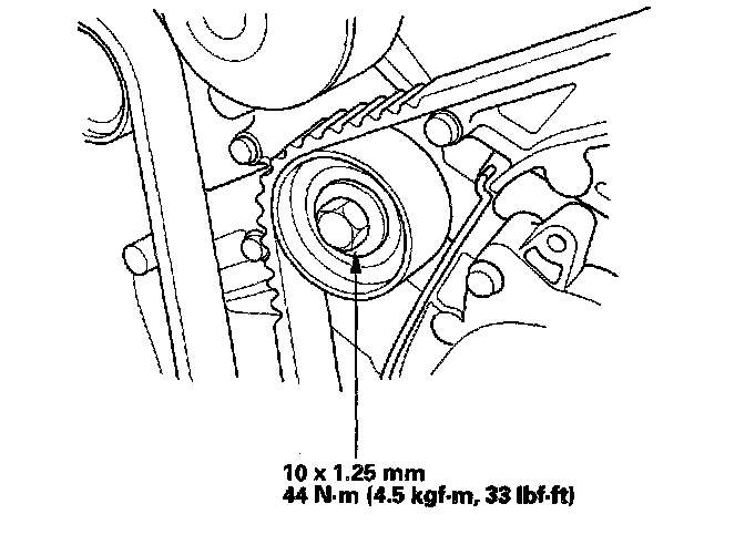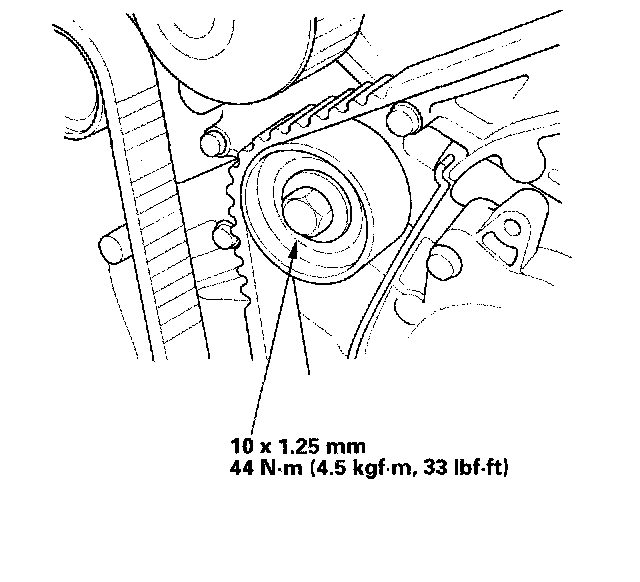 9. Install the timing belt in a counterclockwise sequence starting with the drive pulley.