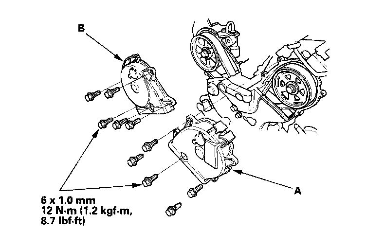 Removal1. Turn the crankshaft so its white mark (A) lines up with the pointer (B).