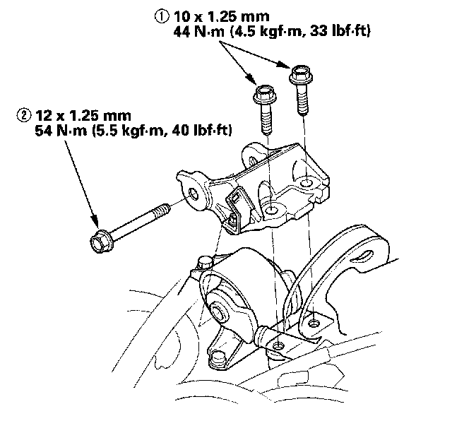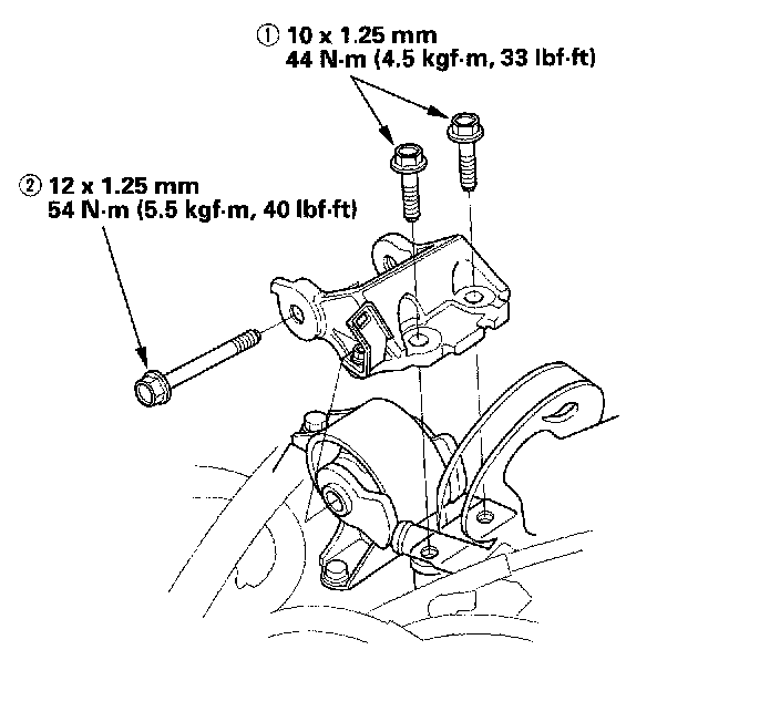 23. Install the side engine mount bracket, then tighten the mounting bolts in the numbered sequence shown.
