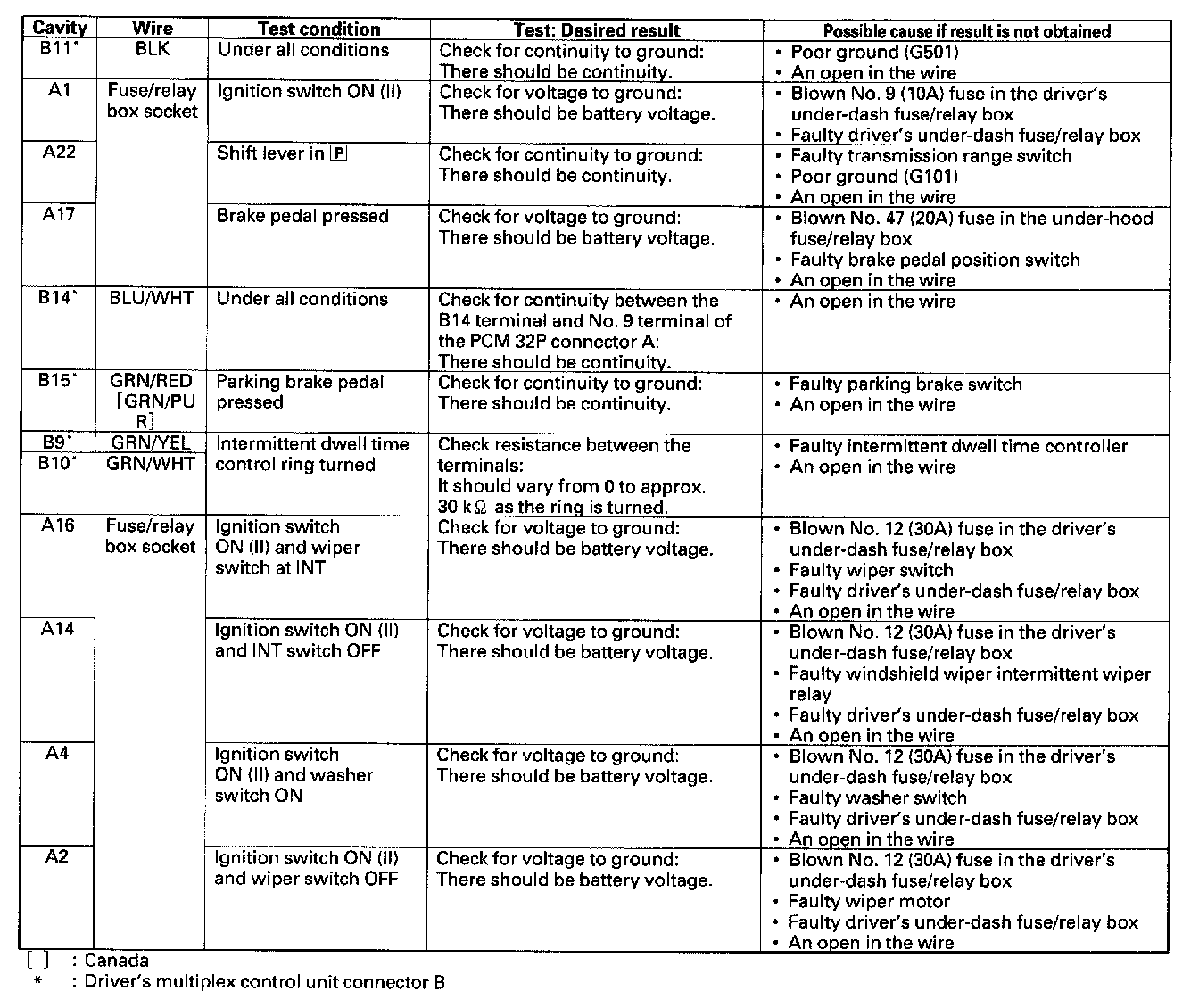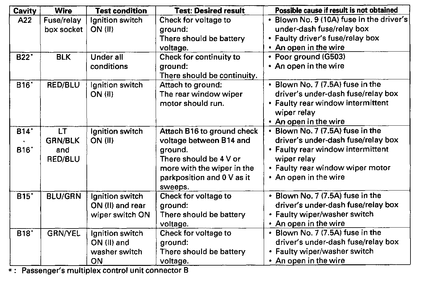 Home >> Honda >> 2003 >> Pilot V6-3.5L >> Repair and Diagnosis >> Wiper and Washer Systems >> Wiper Control Module >> Testing and Inspection