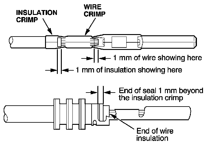 - If you do not have a wire seal, then use the next larger size crimp slot. Position the crimping tool over the insulation crimp section of the terminal, then squeeze the tool with both hands until the stops make contact.