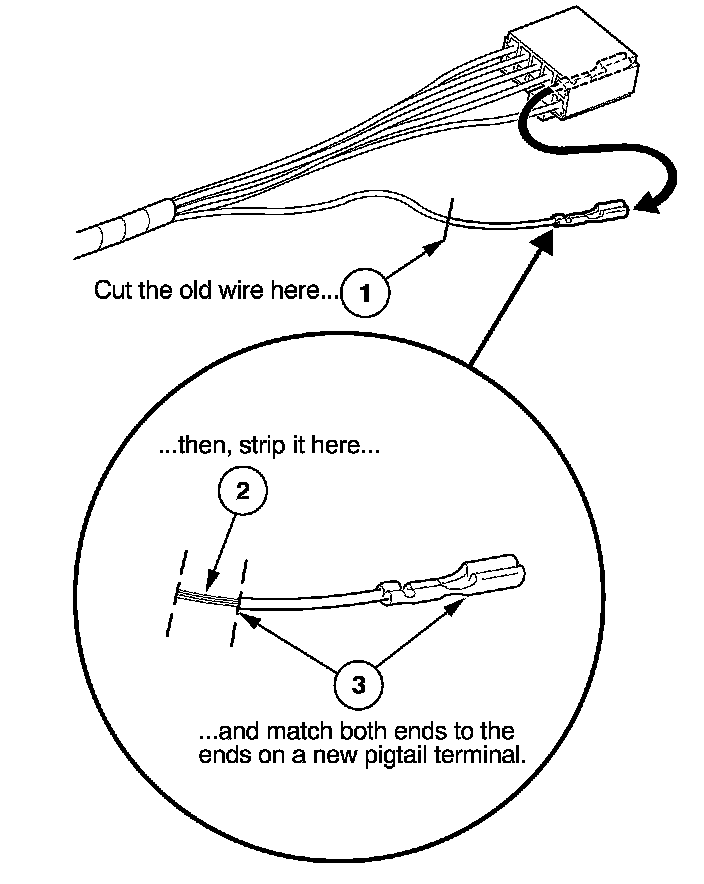 3. Select a pigtail terminal that matches the original wire at both ends (same kind of terminal and same diameter bare wire).