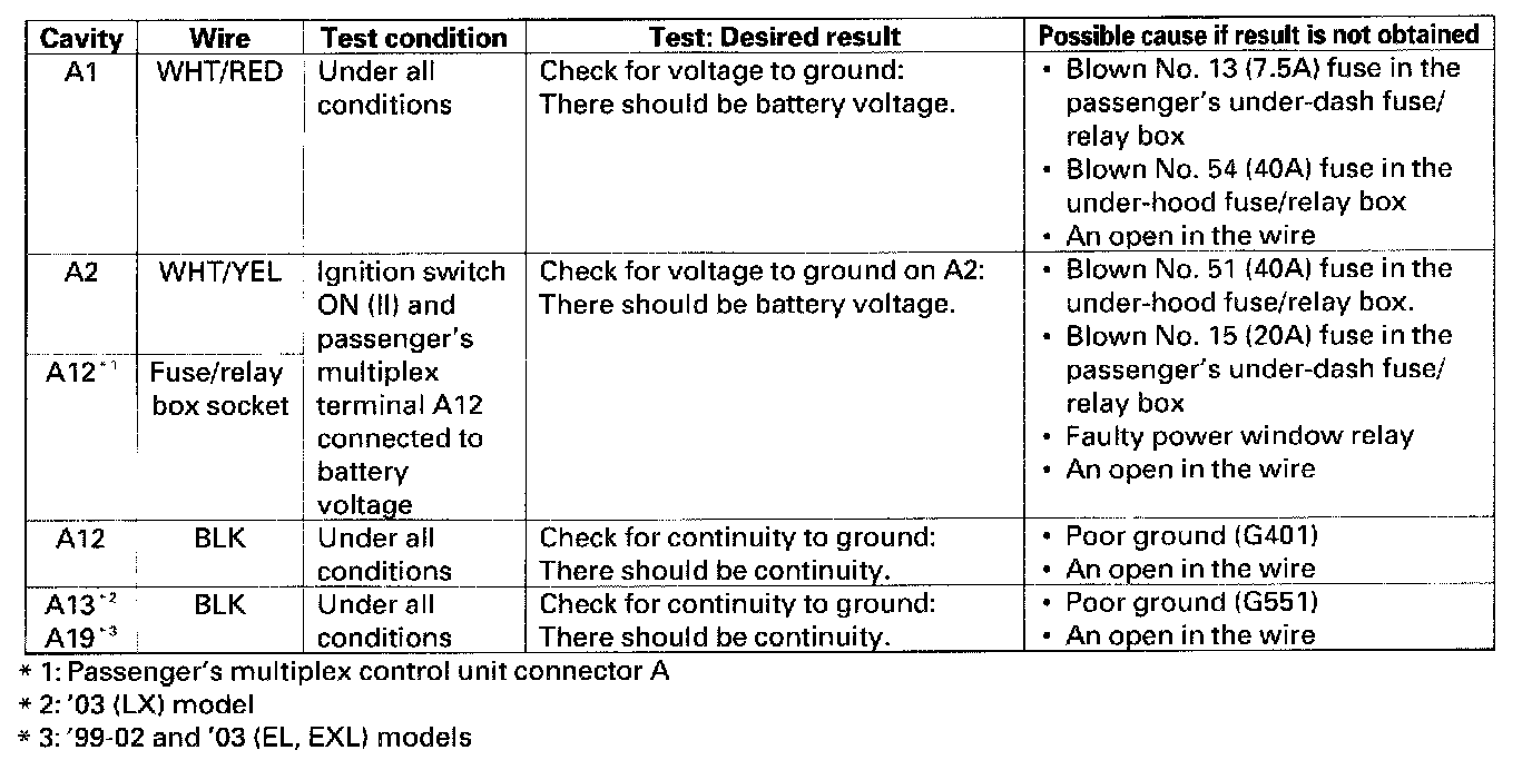 Home >> Honda >> 2004 >> Odyssey V6-3.5L >> Repair and Diagnosis >> Body and Frame >> Body Control Systems >> Testing and Inspection >> Multiplex Control Unit Input Test