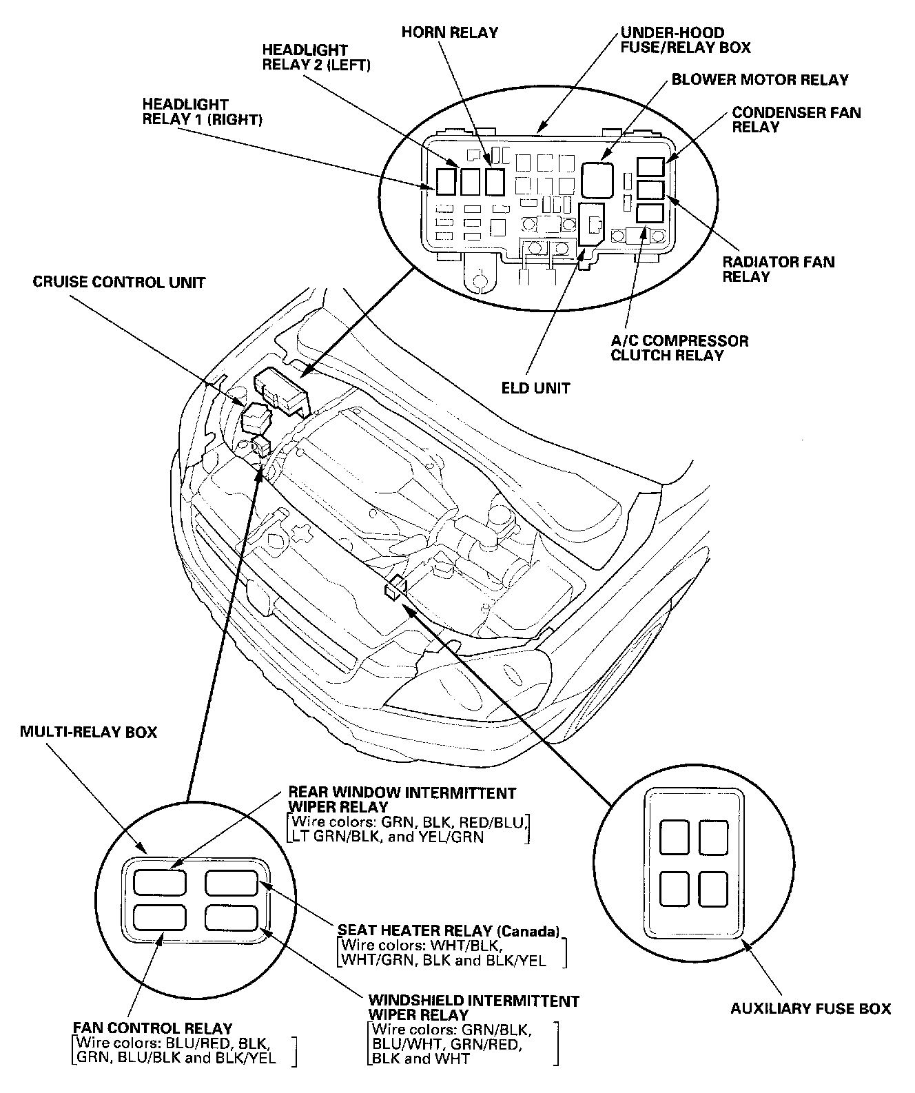 Relay And Control Unit Locations - Engine Compartment: