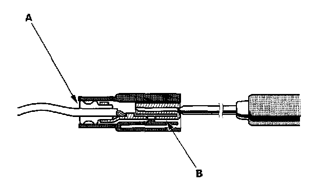 3. If you cannot get to the wire side of the connector or the wire side is sealed (A), disconnect the connector and probe the terminals (B) from the terminal side. Do not force the probe into the connector.