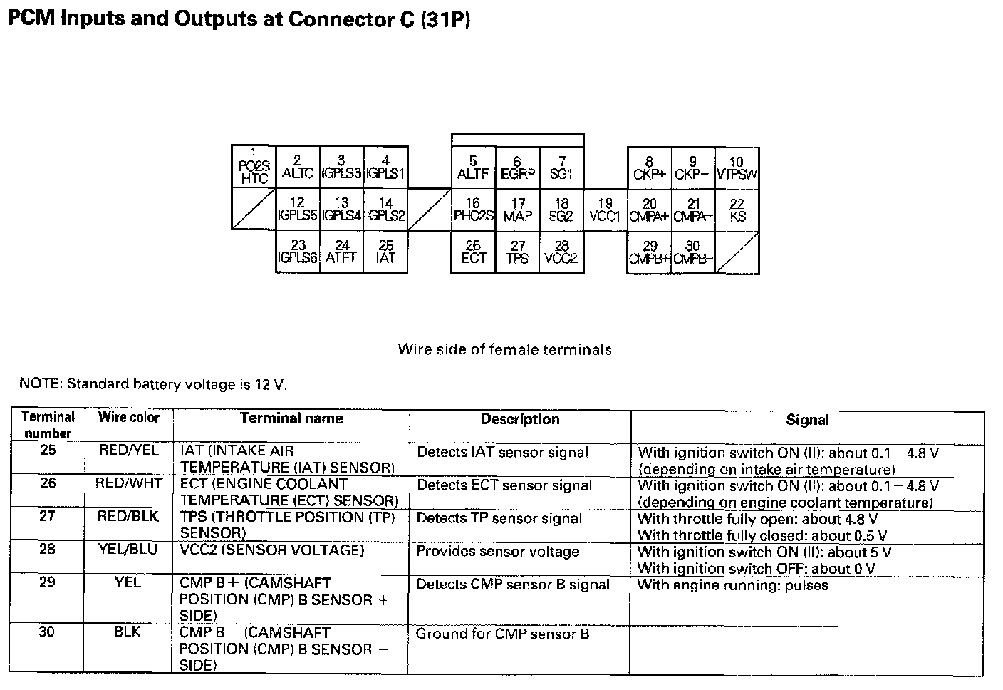 PCM Inputs And Outputs At Connector C (31P) Part 1: