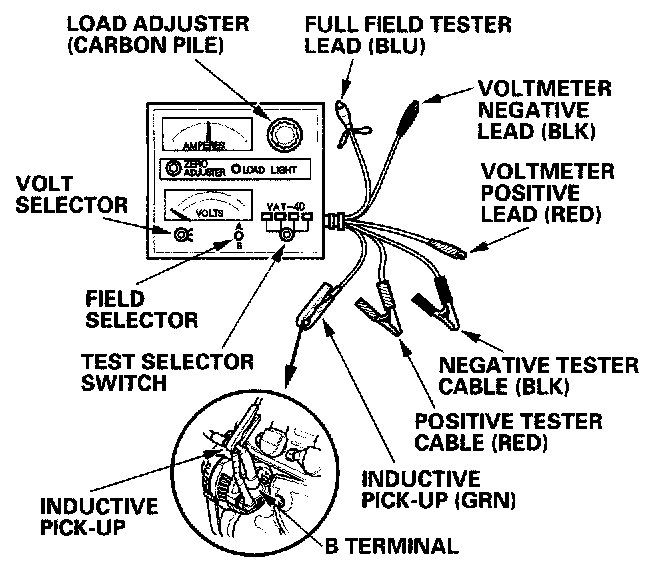 2. Connect a VAT-40 (or equivalent tester), and turn the selector switch to position 1 (starting).