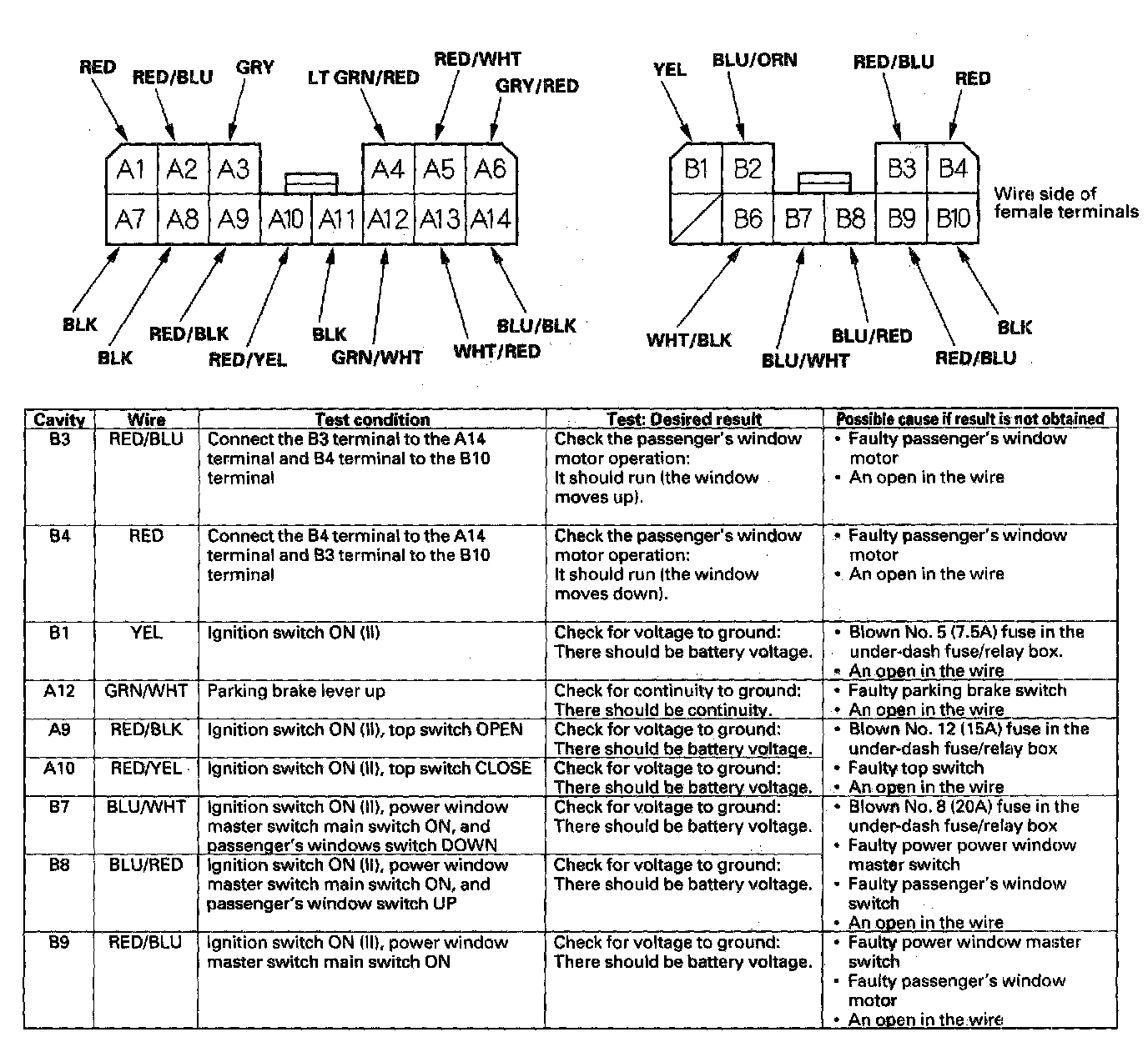 4. With the connectors still disconnected, make these input tests at the connectors.