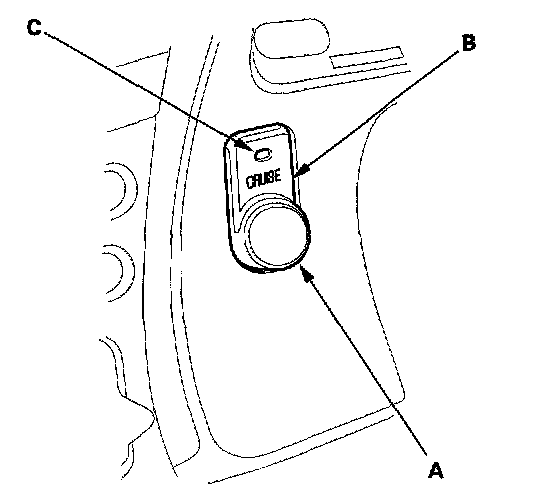 Cruise Control Main Switch/Indicator/Illumination Test1. Turn the ignition switch ON (II). Turn the lighting switch and the cruise control main switch (A) ON.