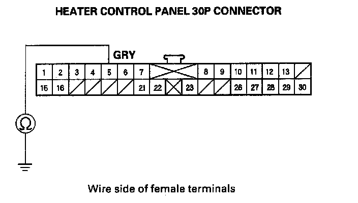 9. Check for continuity between the No.5 terminal of the heater control panel 30P connector and body ground.
