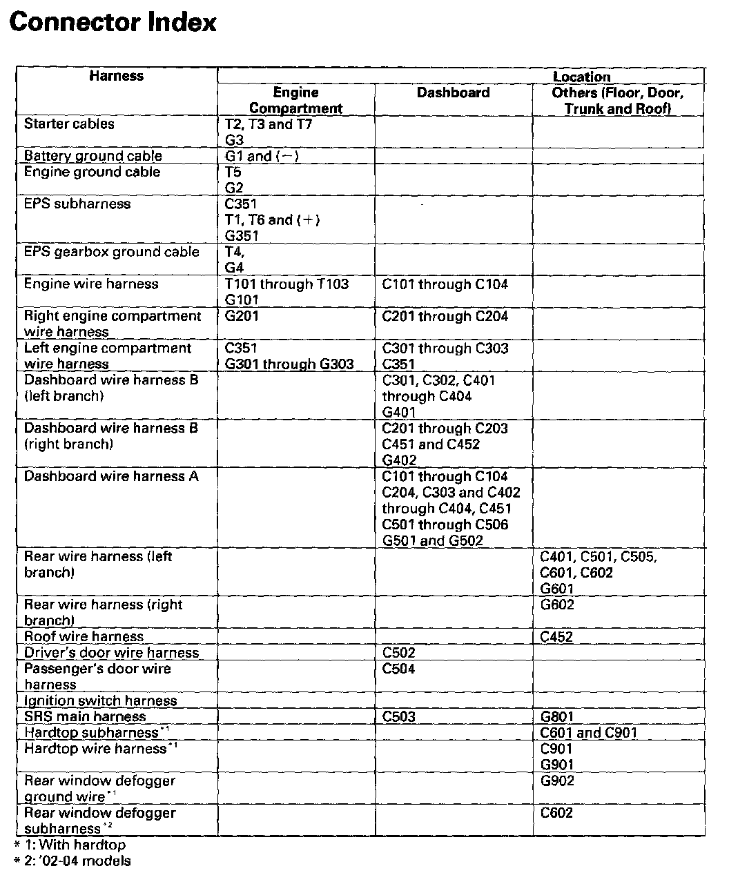 Connectors And Harnesses - Connector Index: