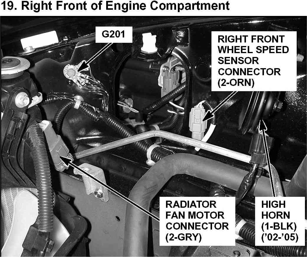 19. Right Front of Engine Compartment: