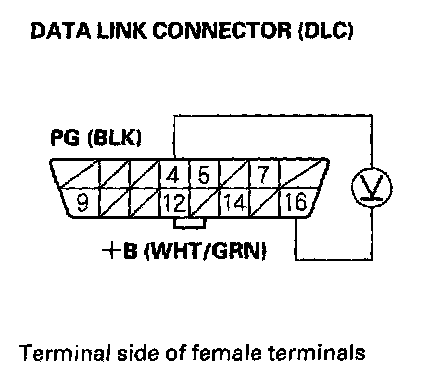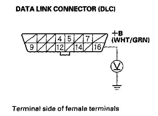 2. Measure voltage between DLC terminals No. 4 and No.16.