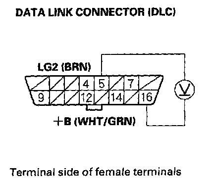 3. Measure voltage between DLC terminals No. 5 and No.16.