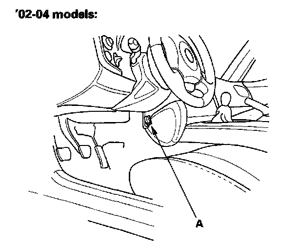 6. Connect the HDS to the DLC (A) located under the passenger's side of dashboard ('00-01 models) or behind the driver's side of the front console ('02-04 models).
