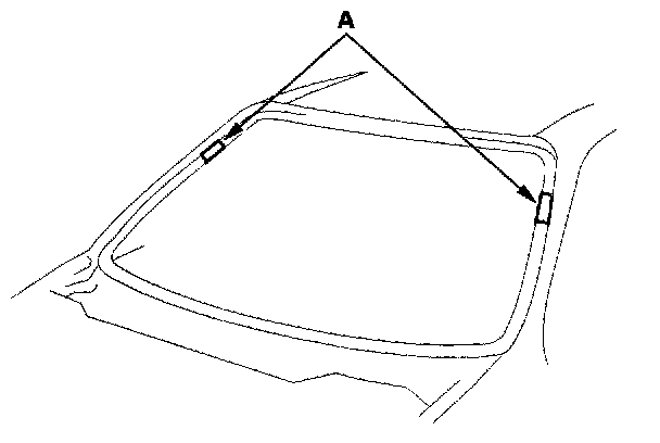 16. If new glass will be installed, set the glass (A) in the opening, and center it. Make alignment marks (B) across the glass and body with a grease pencil at the four points shown Be careful not to touch the glass where adhesive will be applied.