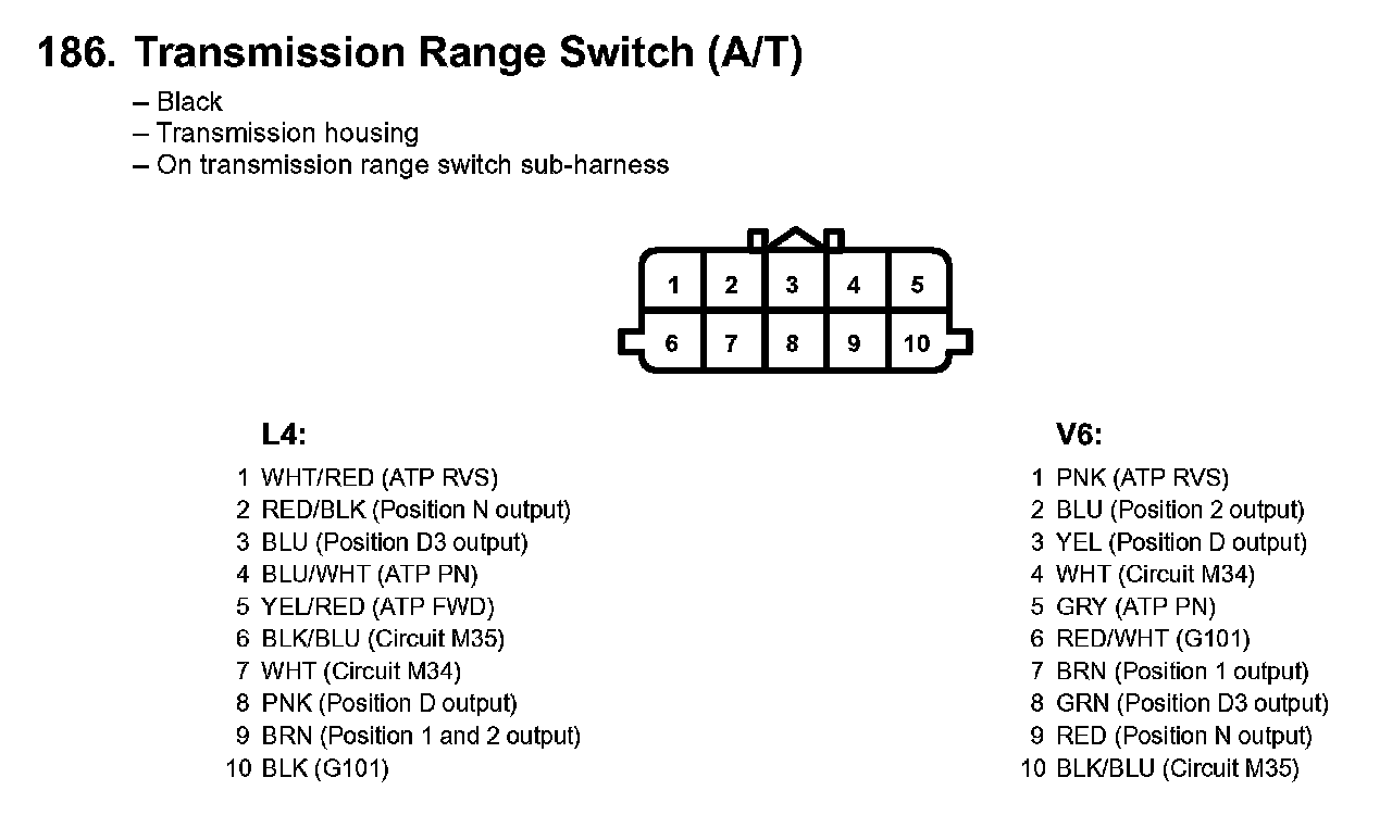186. Transmission Range Switch (A/T):
