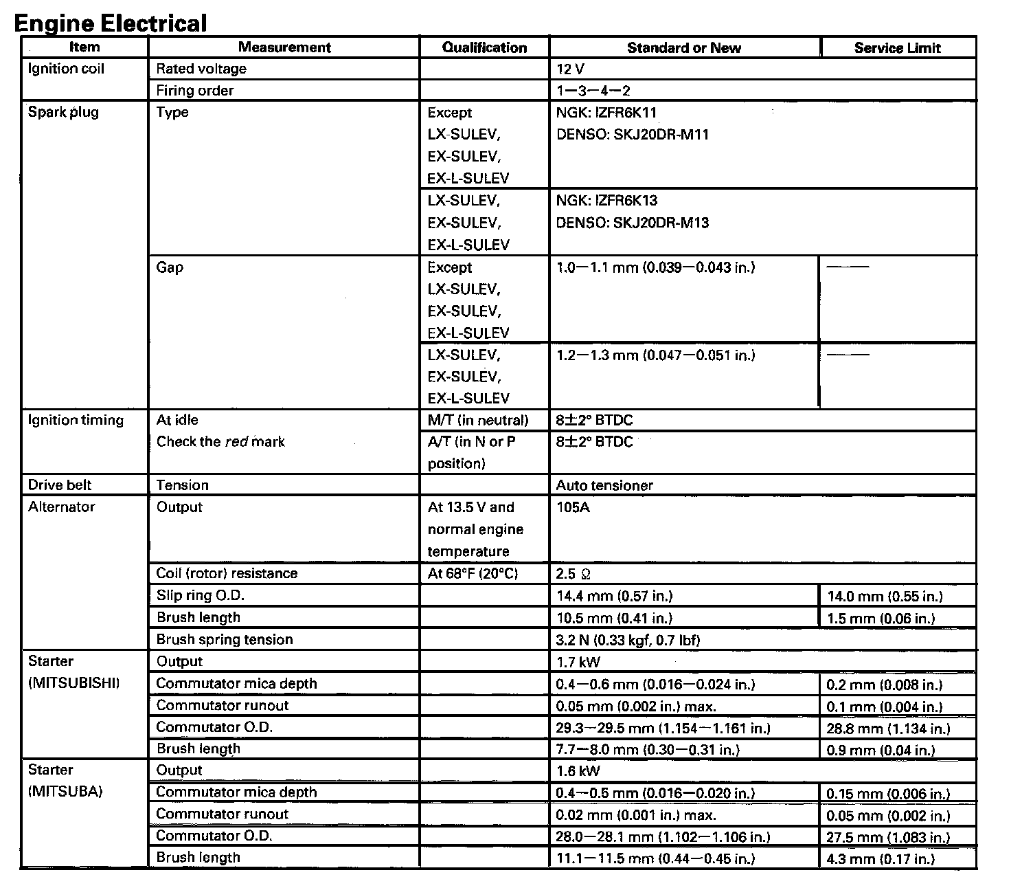 Ignition System: Specifications