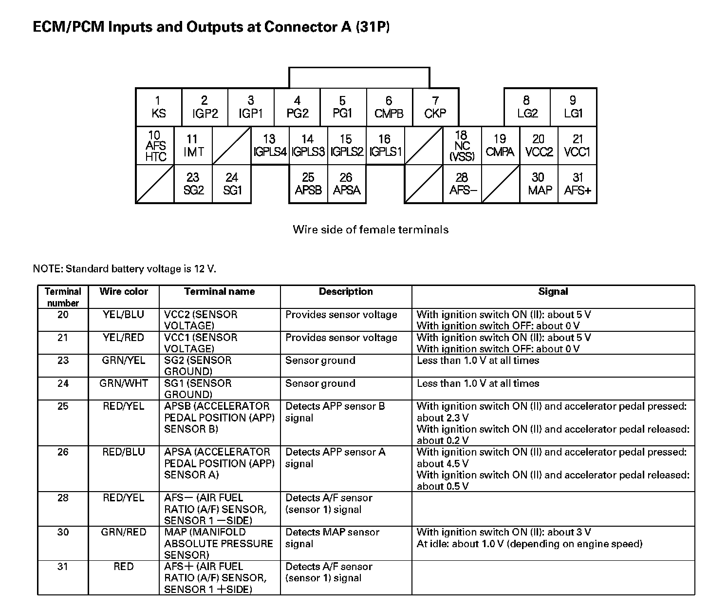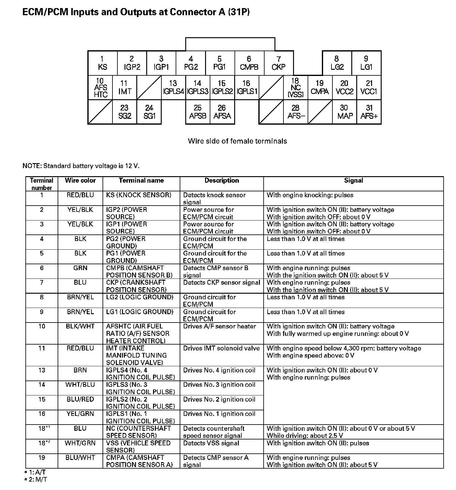 ECM/PCM Inputs And Outputs At Connector A (31P) Part 1: