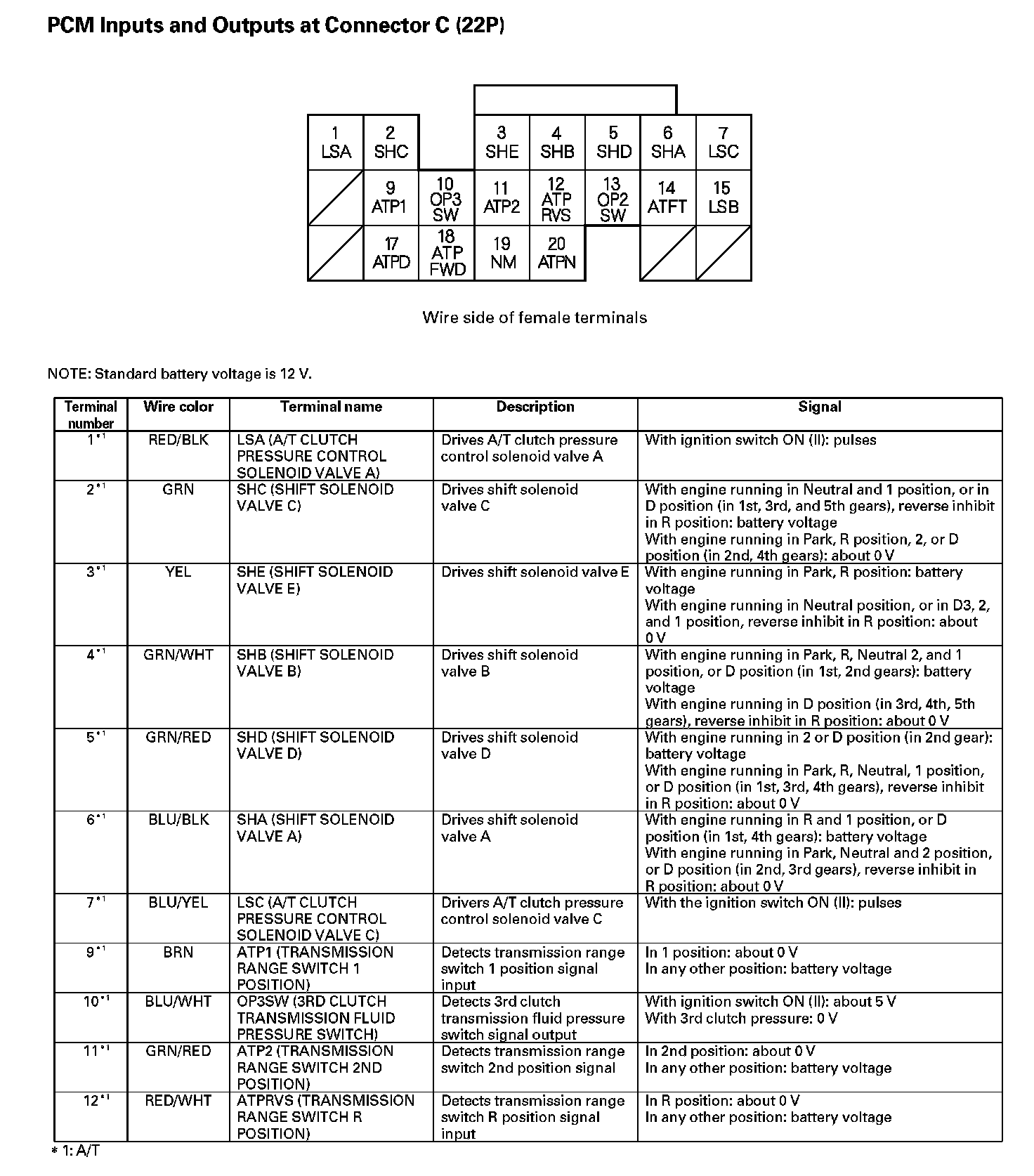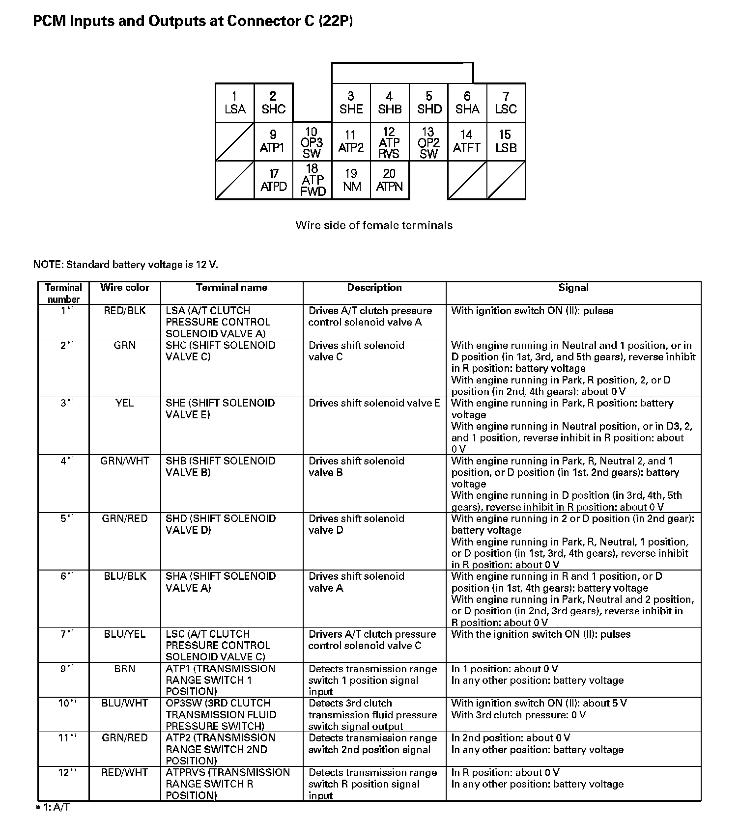 PCM Inputs And Outputs At Connector C (22P) Part 1: