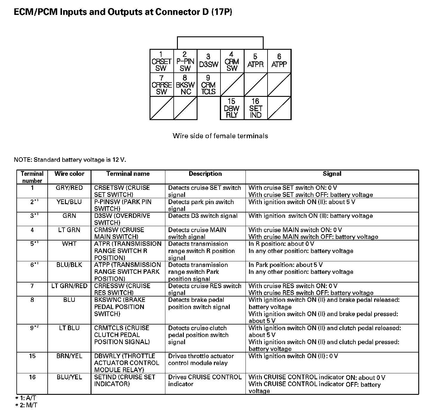 ECM/PCM Inputs And Outputs At Connector D (17P):