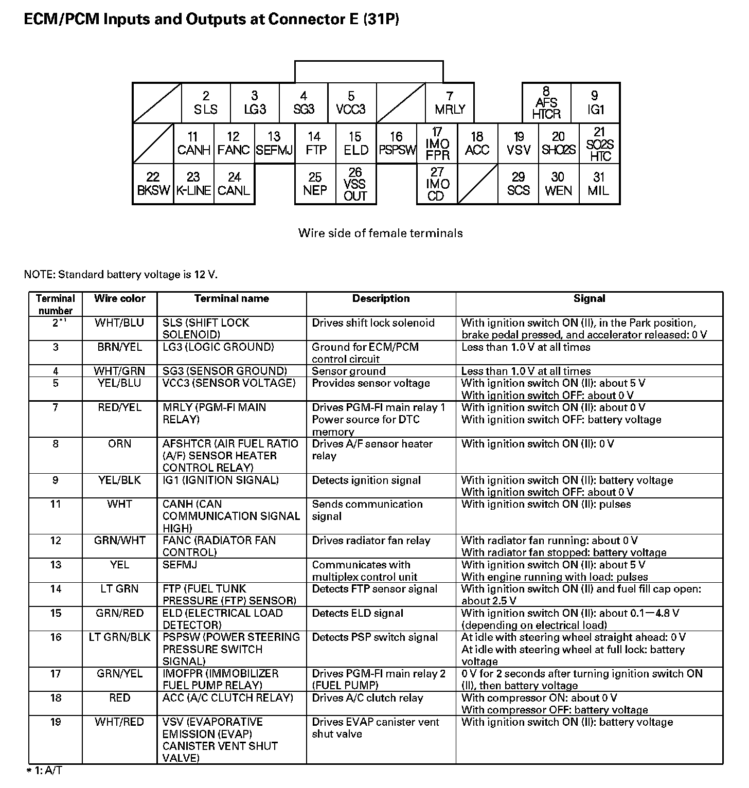 ECM/PCM Inputs And Outputs At Connector E (31P) Part 1: