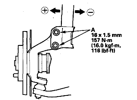 NOTE: The camber angle can be adjusted up to ±15' (center of tolerance) by replacing one damper pinch bolt with the adjusting bolt. The camber angle can be adjusted up to ±30' by replacing both upper and lower damper pinch bolts with the adjusting bolts.