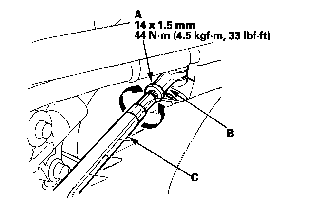 4. Turn the tie-rod (C) until the toe is correct.